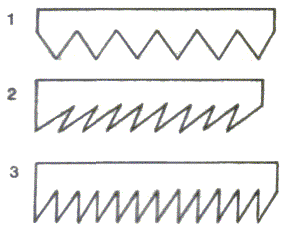 Для поперечного пиления древесины используют пилу с зубьями формы…